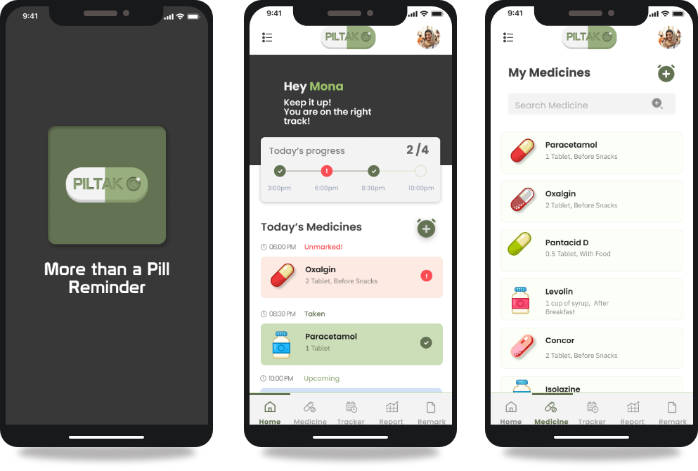 and keep a track of their medicine, and view detailed statistics regarding their medication.