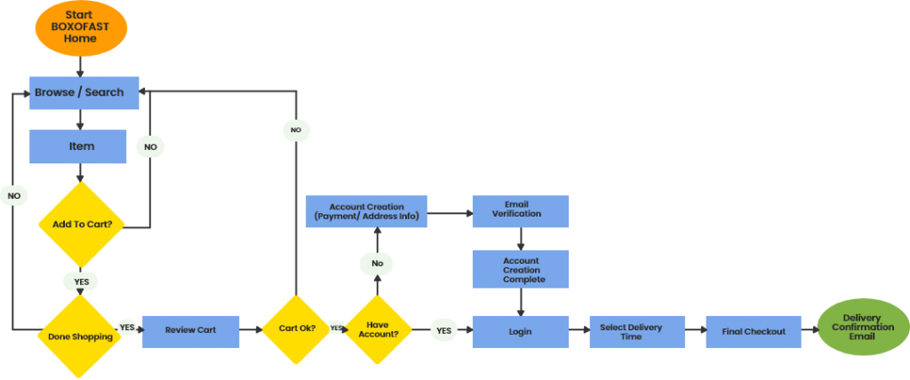 I then created user flows to visualize a typical grocery shopper workflow that would be used during a round of grocery shopping.